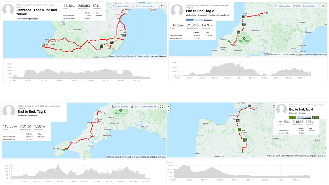 Dieses Jahr war es dann endlich so weit: Taschen packen, mit dem Zug nach Rotterdam, mit der Fähre nach Harwich, mit dem Fahrrad quer durch London und in Penzance die Radreise gestartet. Eine abendliche Schleife nach Land's End, am nächsten Morgen ging es dann richtig los: Im Linksverkehr durch Rosamunde-Pilcher-Land, mit steilen Anstiegen, rasanten Abfahrten und wunderbaren Bahntrassenradwegen. Bis die ersten Erkältungssymptome kamen. Nach drei Tagen war klar: Covid. Quarantäne. Abbruch. End to end wird wieder nichts. Den Great Britain Pechvogel Award verleihen wir uns in einem Einzimmer-Airbnb in Barnstaple, in dem man nicht mal aus dem Fenster schauen kann.